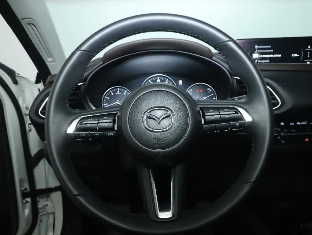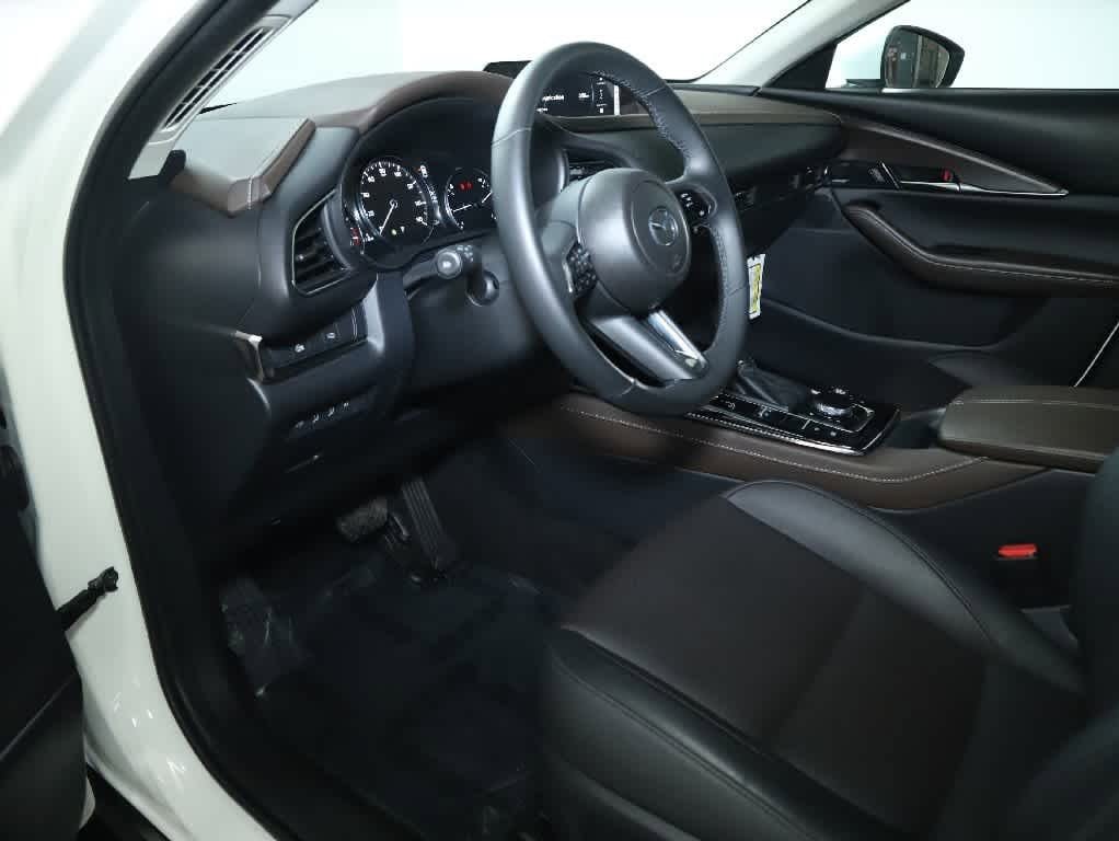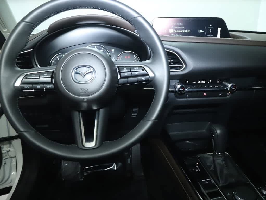 Leather Seats, Navigation, Heated Driver Seat, Back-Up Camera. Rear Spoiler, MP3 Player, Onboard Communications System. Mazda CX-30 2.5 S Premium Package with Snowflake White Pearl Mica exterior and Black w/Brown interior features a 4 Cylinder Engine with 191 HP at 6000 RPM*.