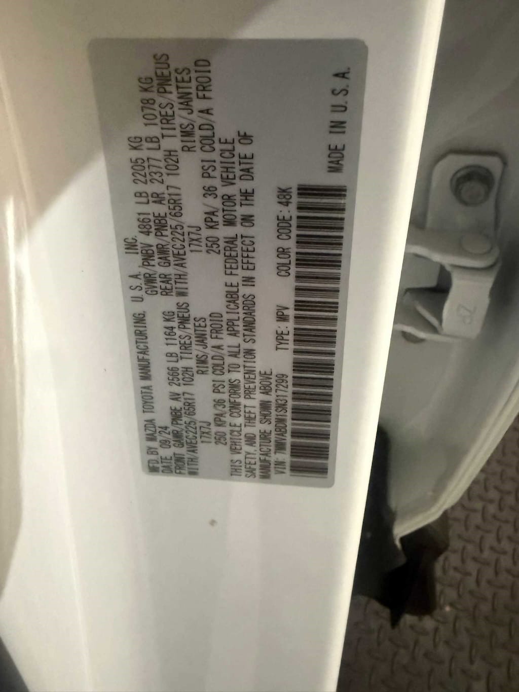 - Front tires: 225/65HR17.0