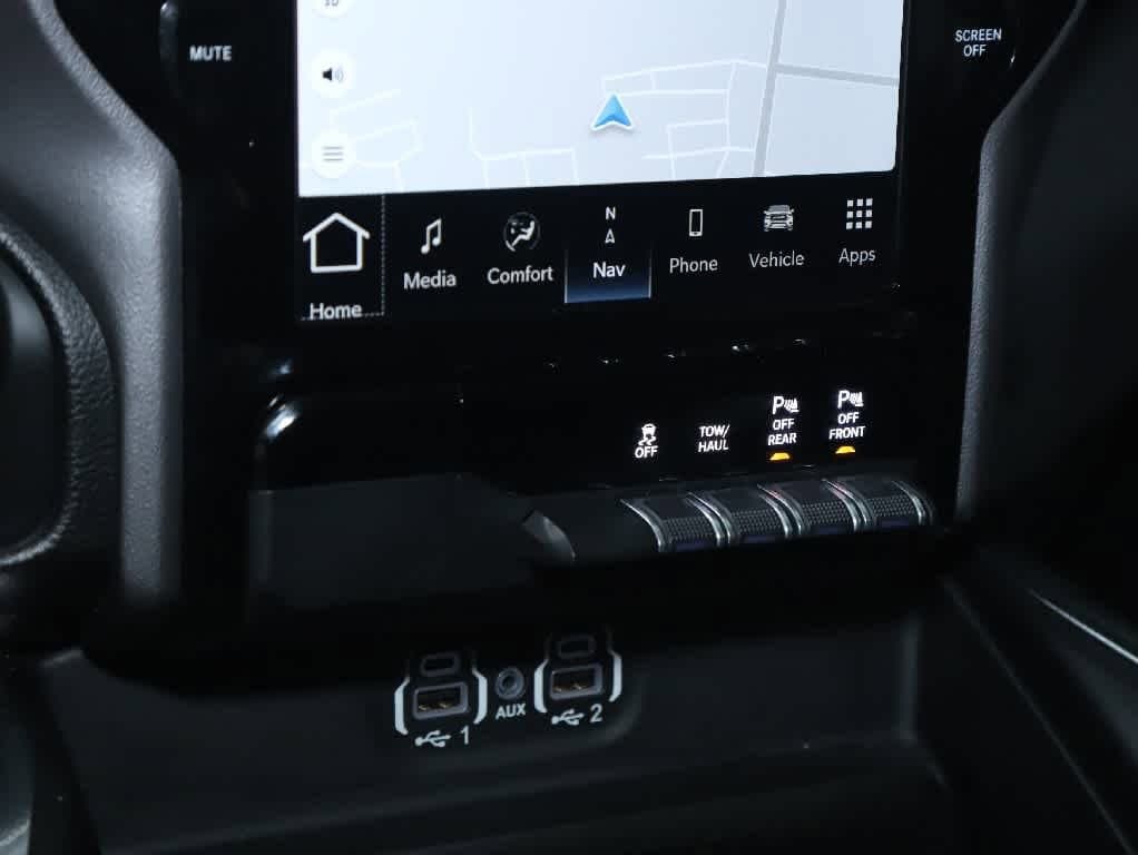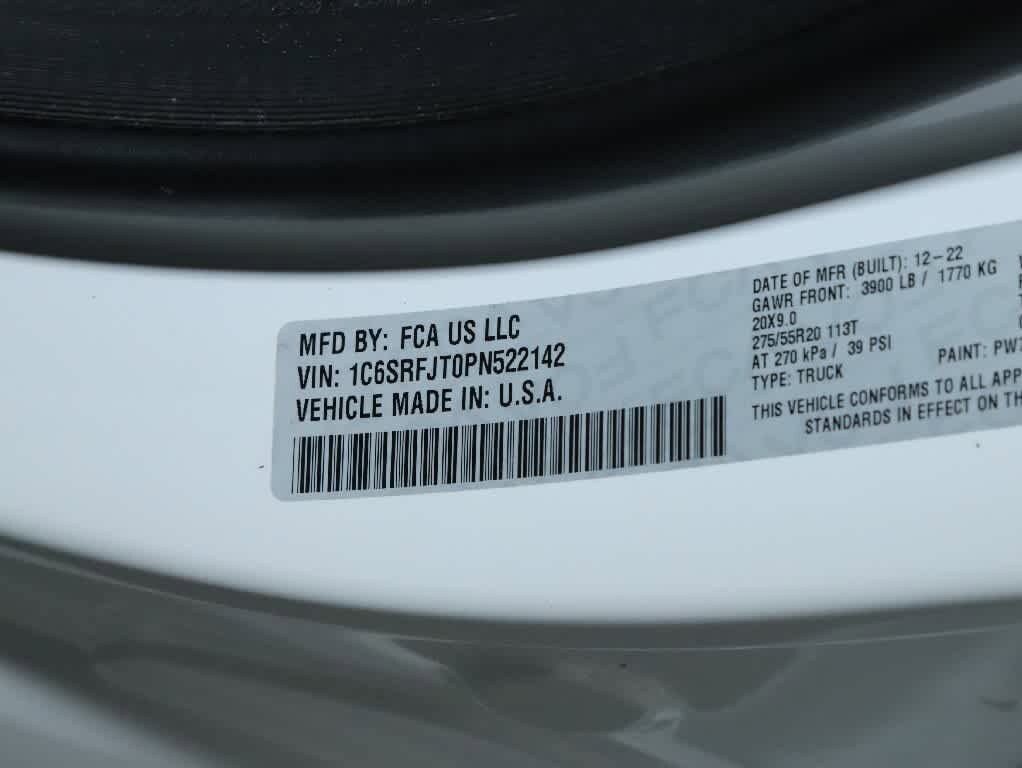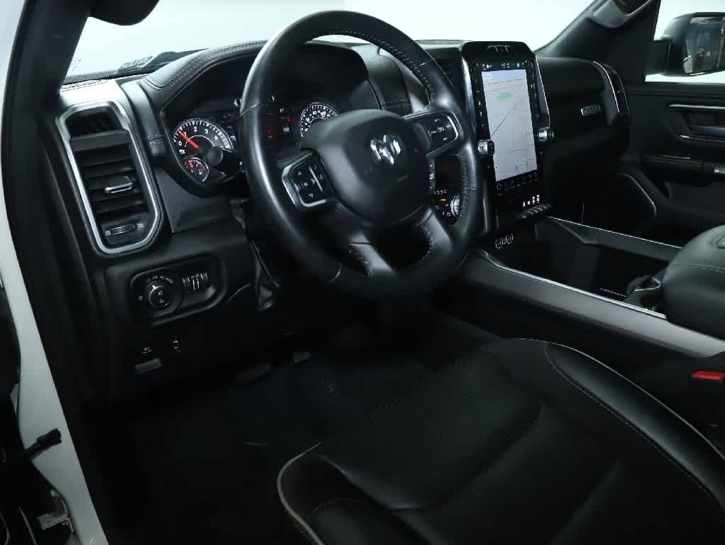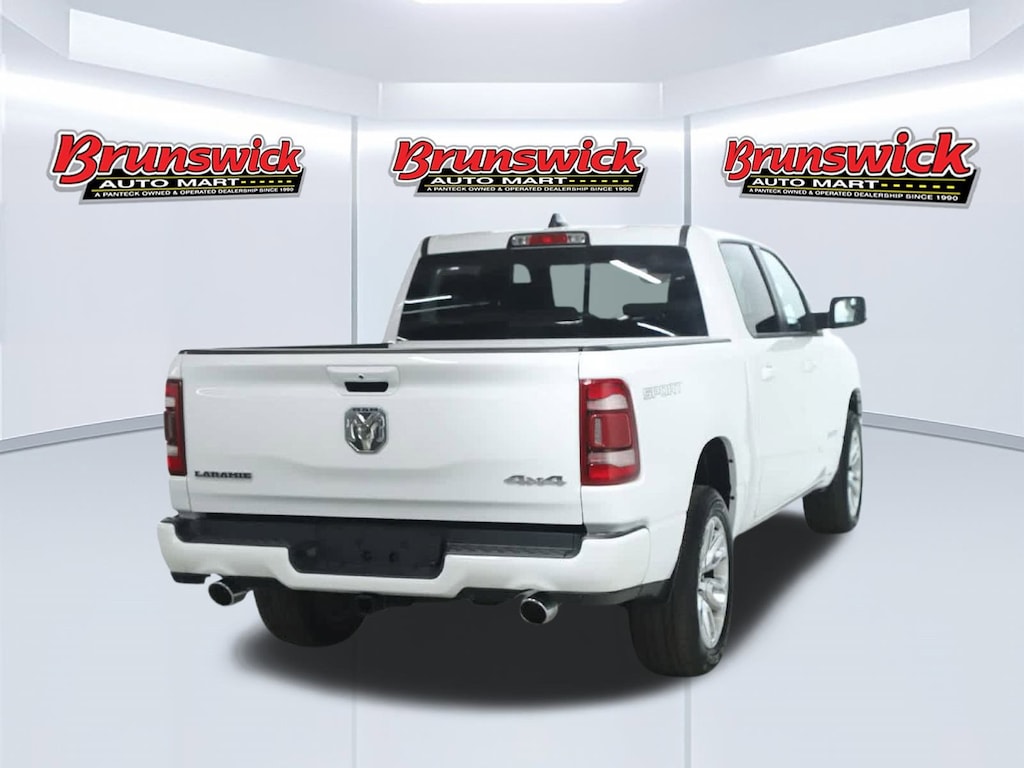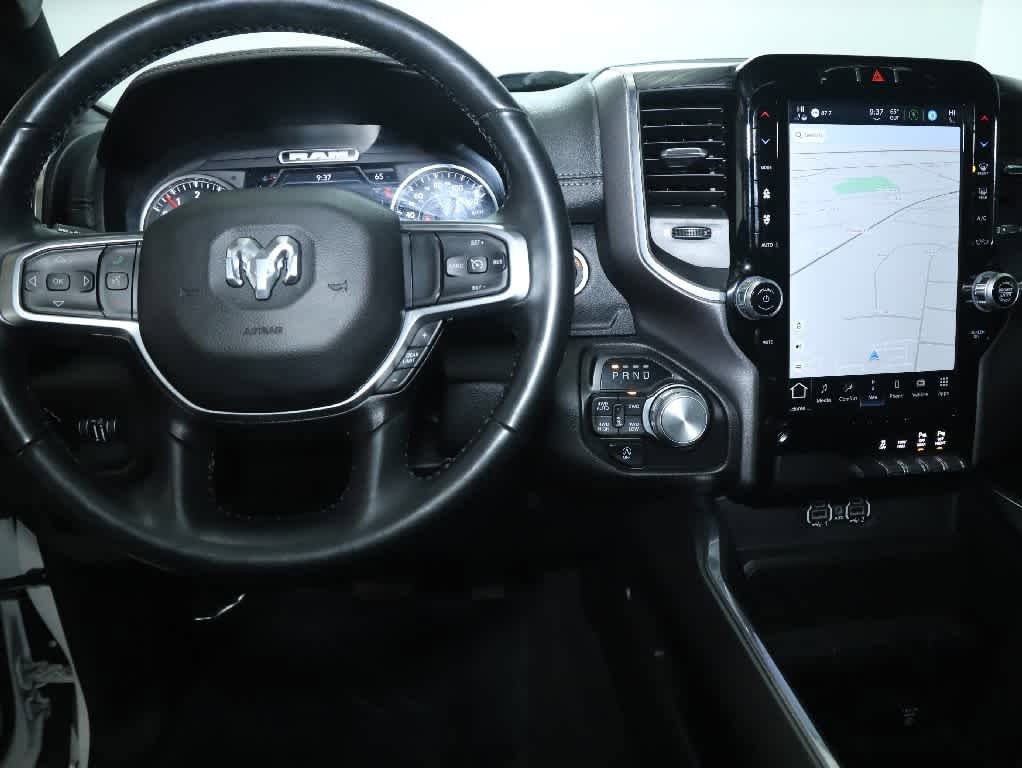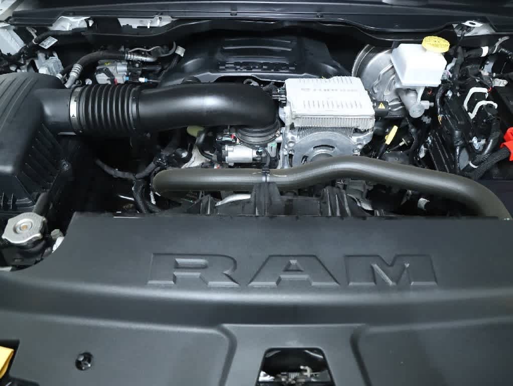 ENGINE: 5.7L V8 HEMI MDS VVT ETORQUE Active Noise Control System, Heavy Duty Engine Cooling, Passive Tuned Mass Damper, GVWR: 7,100 lbs, Dual Rear Exhaust w/Bright Tips, HEMI Badge, 23 Gallon Fuel Tank, 18 Aluminum Spare Wheel, LARAMIE LEVEL 1 EQUIPMENT GROUP Rear Window Defroster, Blind Spot & Cross Path Detection, Rain Sensitive Windshield Wipers, ParkSense Front/Rear Park Assist w/Stop, Rear Power Sliding Window, 12 Touchscreen Display, Front LED Fog Lamps, LED Reflector Headlamps, Foam Bottle Insert (Door Trim Panel), Radio: Uconnect 5 Nav w/12.0 Display, Remote Tailgate Release, Auto High Beam Headlamp Control, Electric Shift On Demand Transfer Case, Front Door Accent Lighting, 2nd Row In Floor Storage Bins, Rear Door Accent Lighting, SPORT APPEARANCE PACKAGE Tires: 275/55R20 OWL All Season, Body Color Premium Power Mirrors, Sport Performance Hood, Sport Decal, Wheels: 20 x 9 Premium Painted w/Inserts, Body Color Exterior Mirrors, Black Interior Accents, Body Color Front Bumper, Body Color Rear Bumper w/Step Pads, Grille Surround 3 Body Color Tex 2 Black, LEATHER TRIMMED BUCKET SEATS Bucket Seats, Center Console Parts Module, Full Length Upgraded Floor Console, CLASS IV RECEIVER HITCH, TRANSMISSION: 8-SPEED AUTOMATIC (8HP75). Ram Laramie with Bright White Clearcoat exterior and Black interior features a 8 Cylinder Engine with 395 HP at 5600 RPM*.