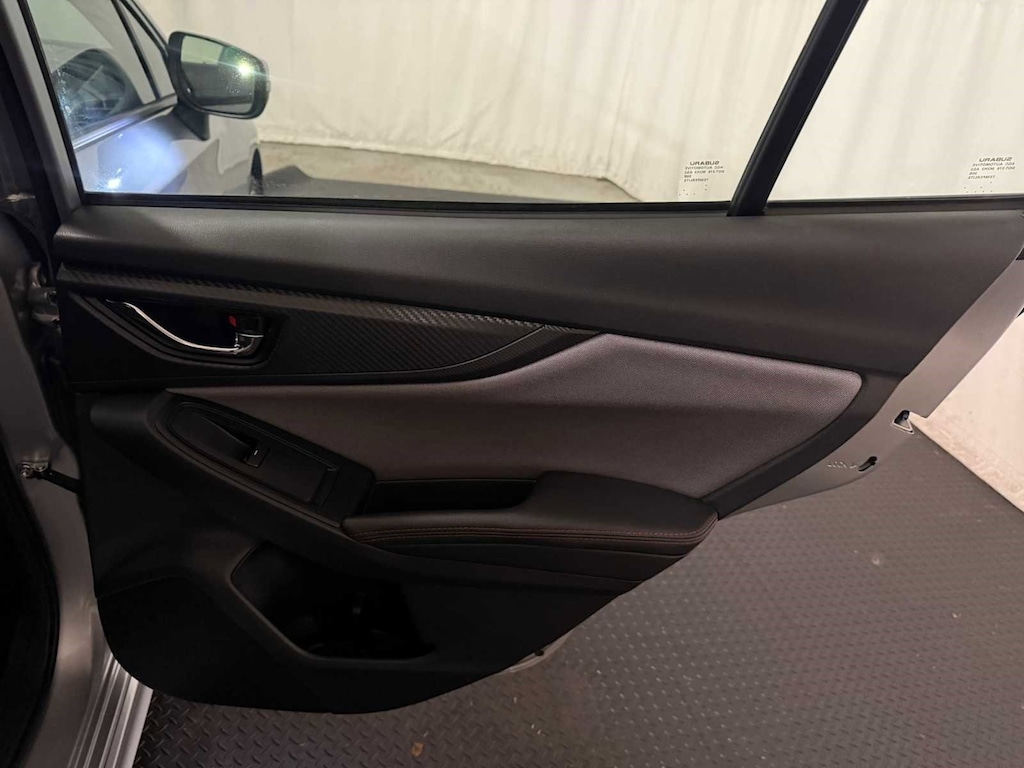 POPULAR PACKAGE #2 Cargo Tray, Part number J501SFL301, Rear Seatback Protector, Part number J505SFL403, Rear Bumper Applique, Part number E771SFL010, Auto-Dimming Mirror w/Compass & HomeLink, Part number H501SSG304, All-Weather Floor Liners, Part number J501SFL110, Auto-Dimming Exterior Mirror w/Approach Light, Part number J201SFL003. Subaru Sport with Ice Silver Metallic exterior and Black interior features a 4 Cylinder Engine with 152 HP at 6000 RPM*.