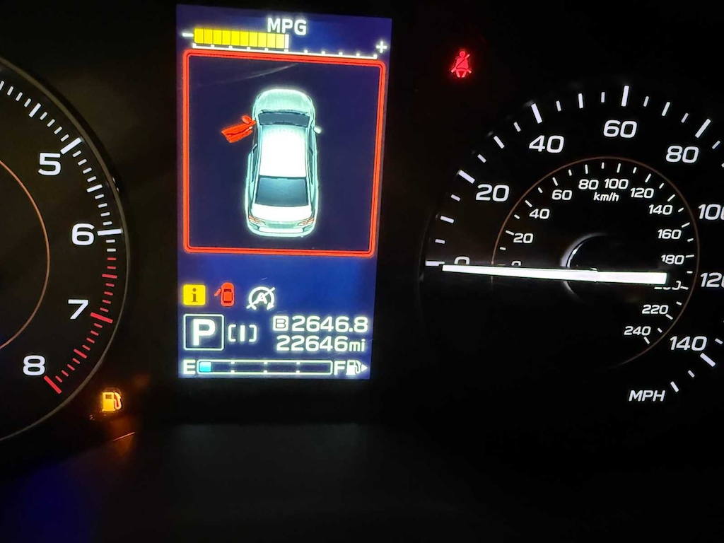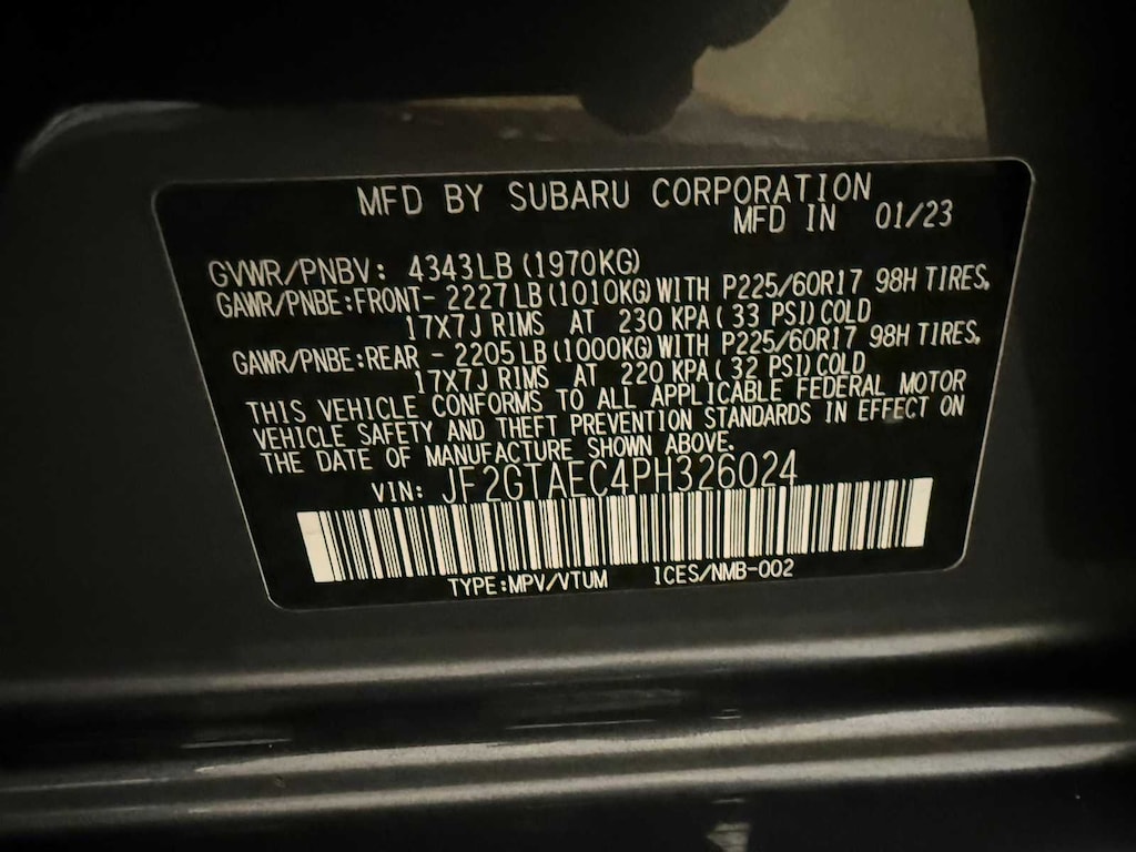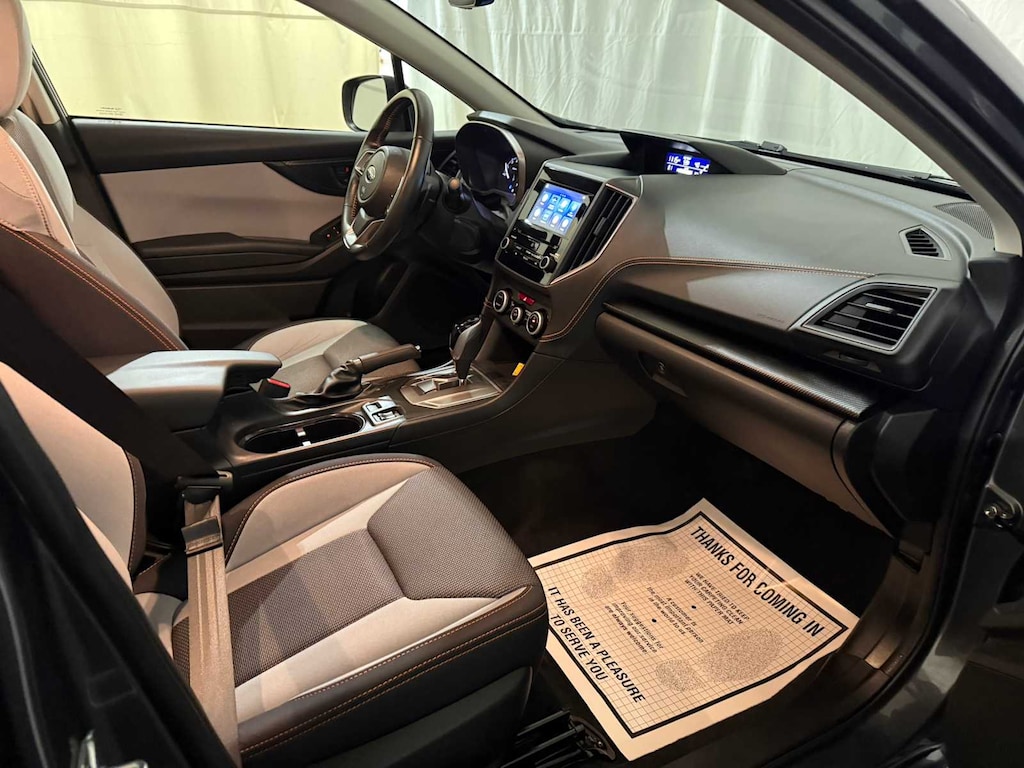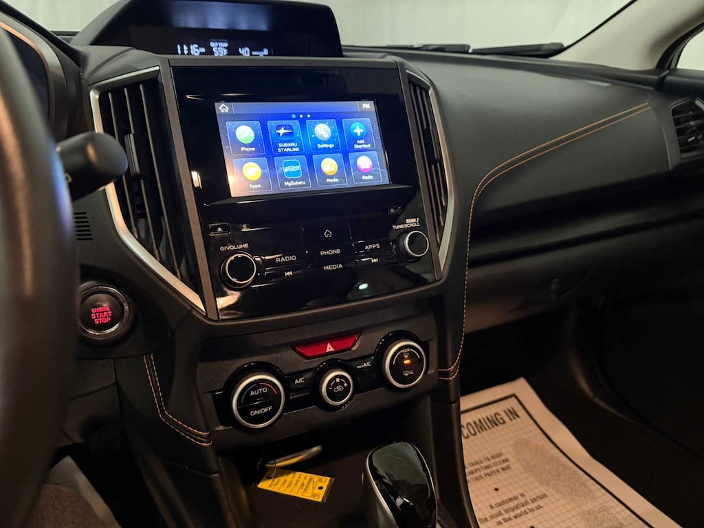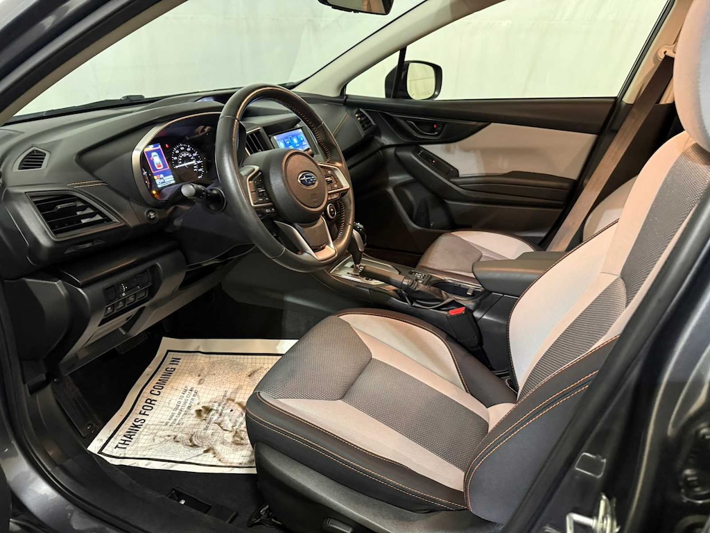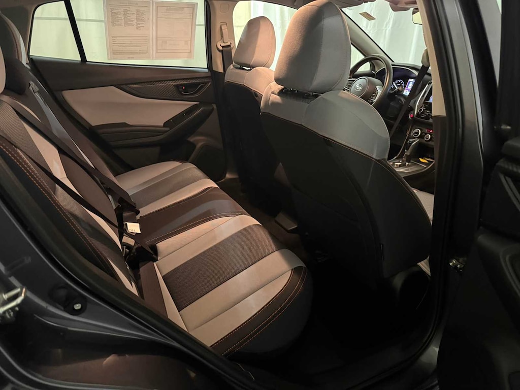 MOONROOF & BSD W/RCTA & POWER DRIVER SEAT liquid filled rubber engine mounts, digital fuel gauge w/fuel door position indicator, digital/digital dual-mode trip odometer, digital speedometer, door ajar indicator, eco gauge (fuel economy), engine oil level warning indicator, current and average fuel economy A and B and distance to empty, journey travel time and distance, paddle shift ratio position indicator, road surface freeze warning indicator, welcome/good-bye message, windshield washer fluid low warning indicator, X-MODE operation indicator/control switch, advanced adaptive cruise control (control system operation, ready/off/on/set/lane centering indicator) following distance setting, eyesight camera malfunction warning, follow distance setting indicator, hold indicator, lead vehicle, AUTO-DIMMING MIRROR W/COMPASS & HOMELINK. Subaru Premium with Magnetite Gray Metallic exterior and Gray w/Orange Stitching interior features a 4 Cylinder Engine with 152 HP at 6000 RPM*.