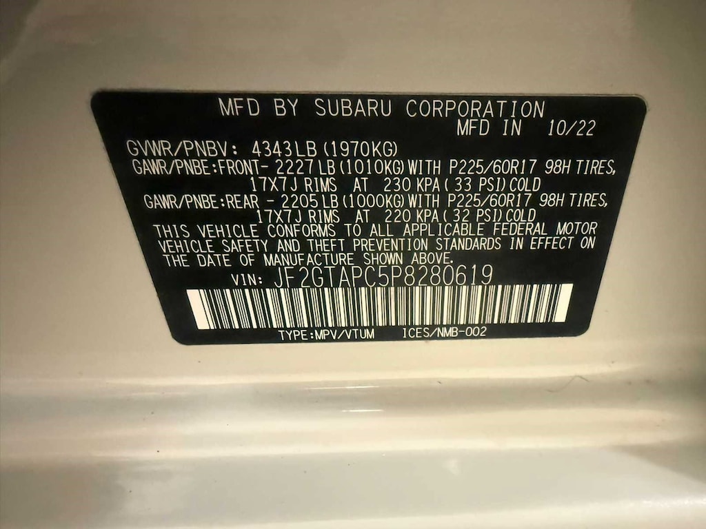 - Front tires: 225/60HR17.0