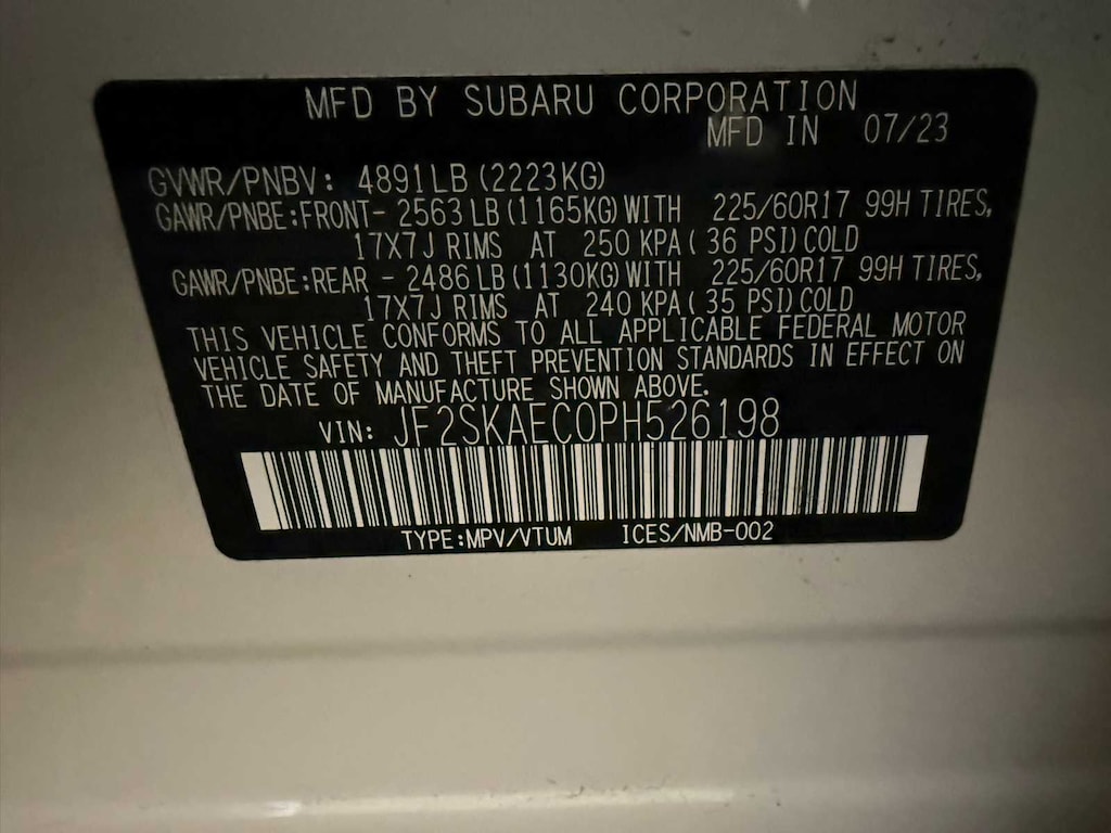 BLIND SPOT DETECTION W/RCTA & POWER REAR GATE Blind-Spot Detection (BSD), Rear Cross-Traffic Alert (RCTA) system, Power Rear Gate, automatic close and height memory, EyeSight System, automatic emergency steering, Drivers Seatback Divided Pocket, Multi-Function High Grade Display, 6.3 LCD color display screen, MFD mode operation switch on steering wheel, ambient temperature gauge, analog clock/digital clock/calendar, audio system information, average vehicle speed, favorite screen w/user configurable triple meter, fuel economy w/current and average fuel economy A and B and distance to empty, HVAC information, information screen, interrupt warning screen w/outside temperature/vehicle systems, self check and vehicle maintenance reminder, weather information, vehicle activation status for. Subaru Premium with Crystal White Pearl exterior and Black interior features a 4 Cylinder Engine with 182 HP at 5800 RPM*.