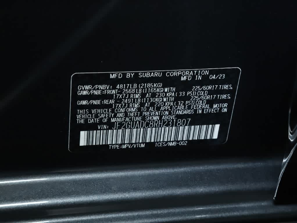 BSD/RCTA & MOONRF & ALL WEATHER PKG & PWR DR. SEAT Blind Spot Detection w/Rear Cross-Traffic Alert, automatic emergency steering, system off switch, exterior power mirrors w/BSD/RCTA detection indicator, rear radar detection sensors, blind-spot detection, lane change assist and rear cross-traffic alert audible vehicle detection warning, 10-Way Power Drivers Seat, 2-way lumbar support, All-Weather Package, Heated Exterior Mirrors, Heated Front Seats, Heated Wipers, Power Moonroof, tilt up and internal retracting w/auto-open/close, Laminated, UV and dark tint moonroof glass, CROSSTREK MIRROR PACKAGE Auto-Dimming Mirror w/Compass & HomeLink, Auto-Dimming Exterior Mirror w/Approach Light. Subaru Premium with Magnetite Gray Metallic exterior and Gray interior features a 4 Cylinder Engine with 152 HP at 6000 RPM*.