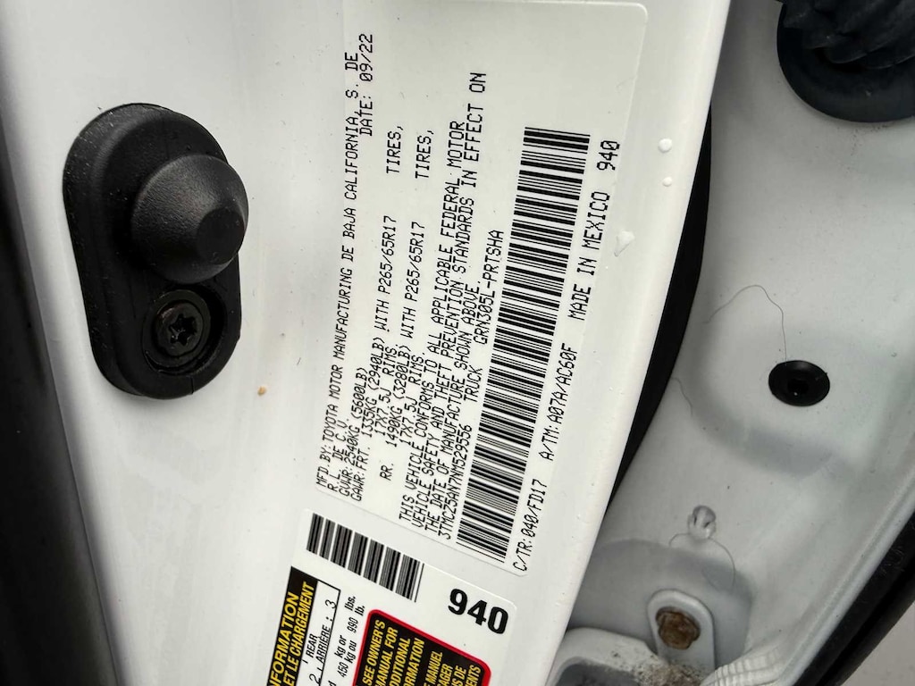 ALL WEATHER FLOOR LINER & DOOR SILL PROTECTOR (TMS). Toyota TRD Sport with White exterior and Cement interior features a V6 Cylinder Engine with 278 HP at 6000 RPM*.