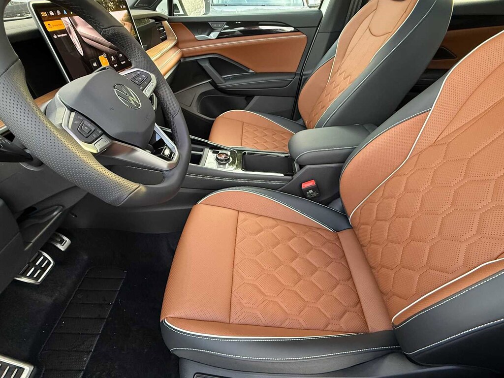 Leather Seats, Rear Air Rear Spoiler, MP3 Player, Sunroof, Onboard Communications System. Volkswagen SEL R-Line Turbo with Deep Black Pearl exterior and Amber Brown interior features a 4 Cylinder Engine with 268 HP at 5000 Rpm*.