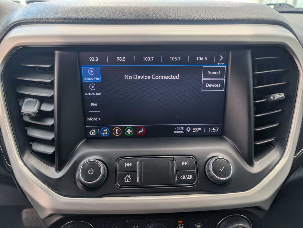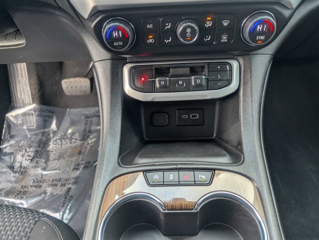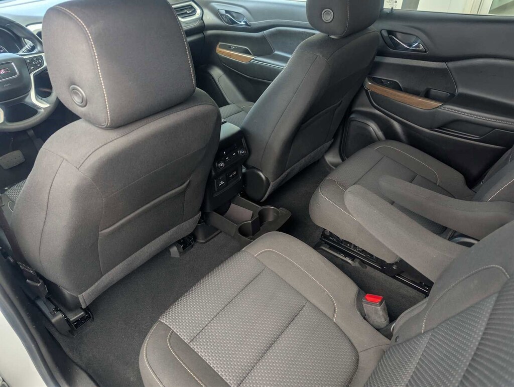 DRIVER CONVENIENCE PACKAGE includes (A2X) 8-way power driver seat adjuster, (KA1) driver and front passenger heated seats, (AL9) power driver lumbar control, (BTV) Remote Start, (TC2) hands-free power programmable liftgate and (KI6) 120-volt power outlet (Includes (V64) brushed aluminum roof rails.), ELEVATION EDITION includes Black grille and exterior accents, (QGY) 20 aluminum wheels, Black center caps, (QNU) 20 all-season blackwall tires and (V59) Gloss Black roof rails, AUDIO SYSTEM, 8 DIAGONAL GMC INFOTAINMENT SYSTEM includes multi-touch display, AM/FM stereo, includes Bluetooth® streaming audio for music and most phones; featuring Android Auto® and Apple CarPlay® capability for compatible phones (STD), ENGINE, 2.0L TURBO, 4-CYLINDER, SIDI with Variable Valve Timing (VVT) (228 hp [171 kW] @ 5000 rpm, 258 lb-ft of torque [349.8 N-m]) @ 1500 - 4000 rpm (STD), TRANSMISSION, 9-SPEED AUTOMATIC, ELECTRONICALLY-CONTROLLED with 2.0L Turbo engine (STD). GMC SLE with Summit White exterior and Jet Black interior features a 4 Cylinder Engine with 228 HP at 5000 RPM*.