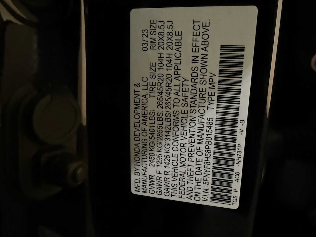 - Front tires: 265/45HR20.0