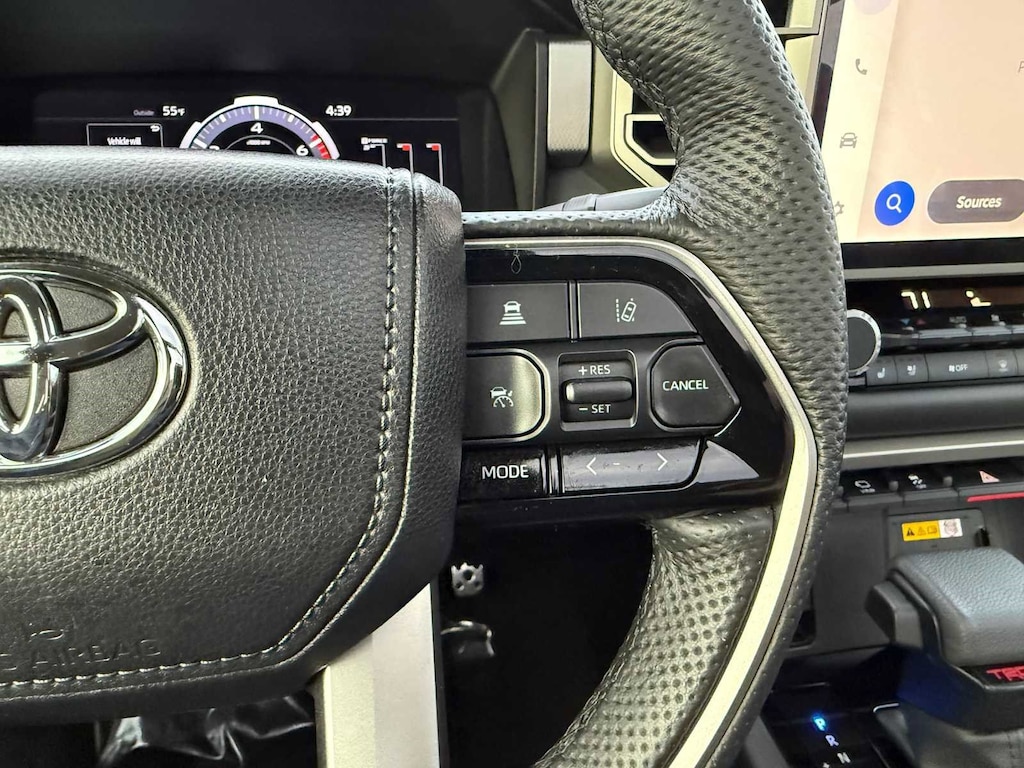 TRD OFF-ROAD PACKAGE Wheels: 20 Black Alloy, Front & Rear Mud Guards, Multi-Terrain Back Monitor, TRI-FOLD TONNEAU COVER (TMS), POWER TILT/SLIDE PANORAMIC SUNROOF power sunshade, TRD CAST ALUMINUM RUNNING BOARD (TMS), NON-SKID SPRAY-ON BED LINER (TMS) Toyota Limited with Lunar Rock exterior and BLACK interior features a V6 Cylinder Engine with 389 HP at 5200 RPM*.